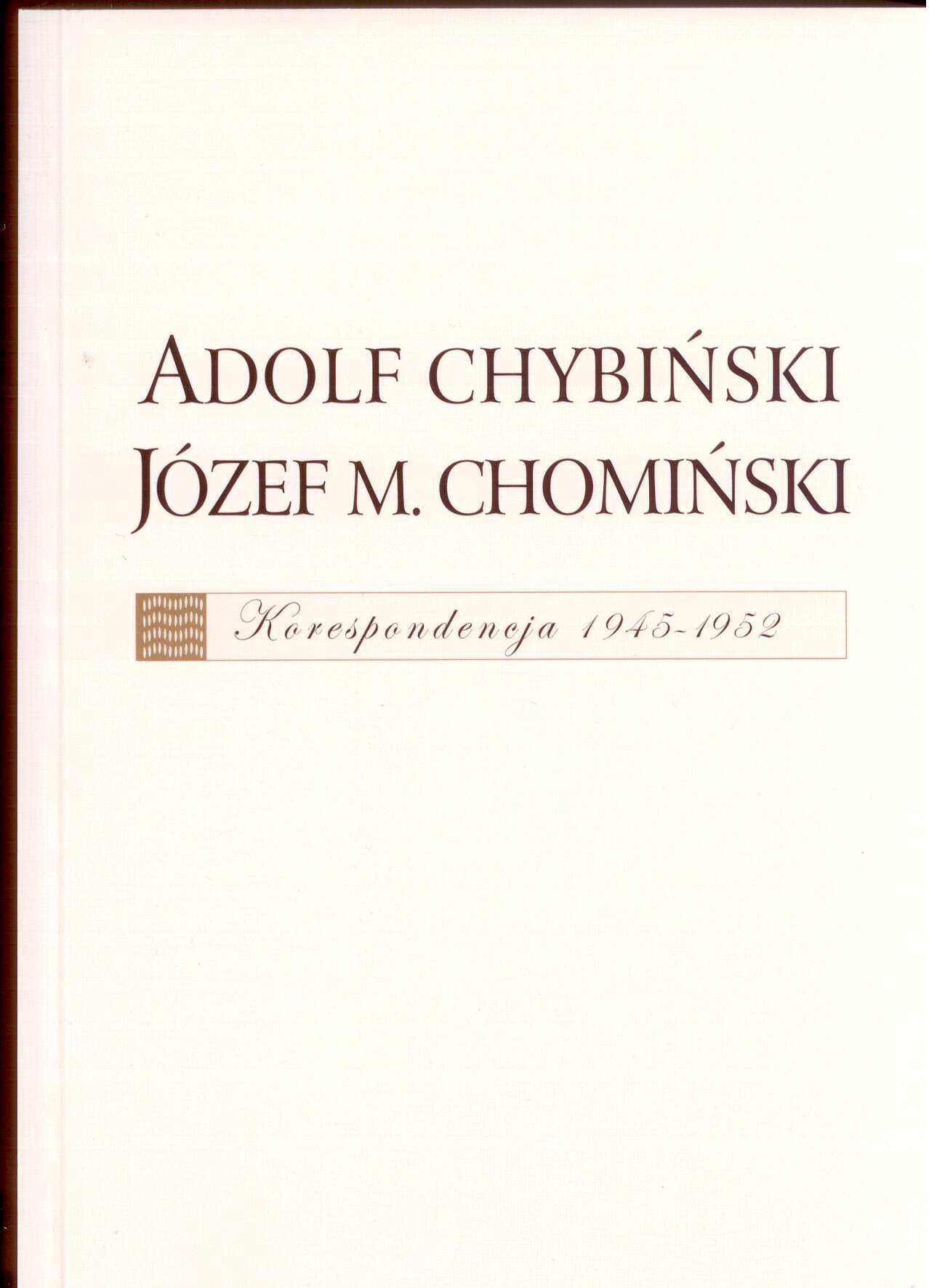 Obszerna, licząca 253 listy, korespondencja z lat 1945‒1952 między prof. Adolfem Chybińskim i jego byłym uczniem, prof. Józefem Chomińskim, poświęcona jest niemal wyłącznie problemom ówczesnej muzykologii, zarówno bieżącym, jak i bardziej dalekosiężnym koncepcjom.