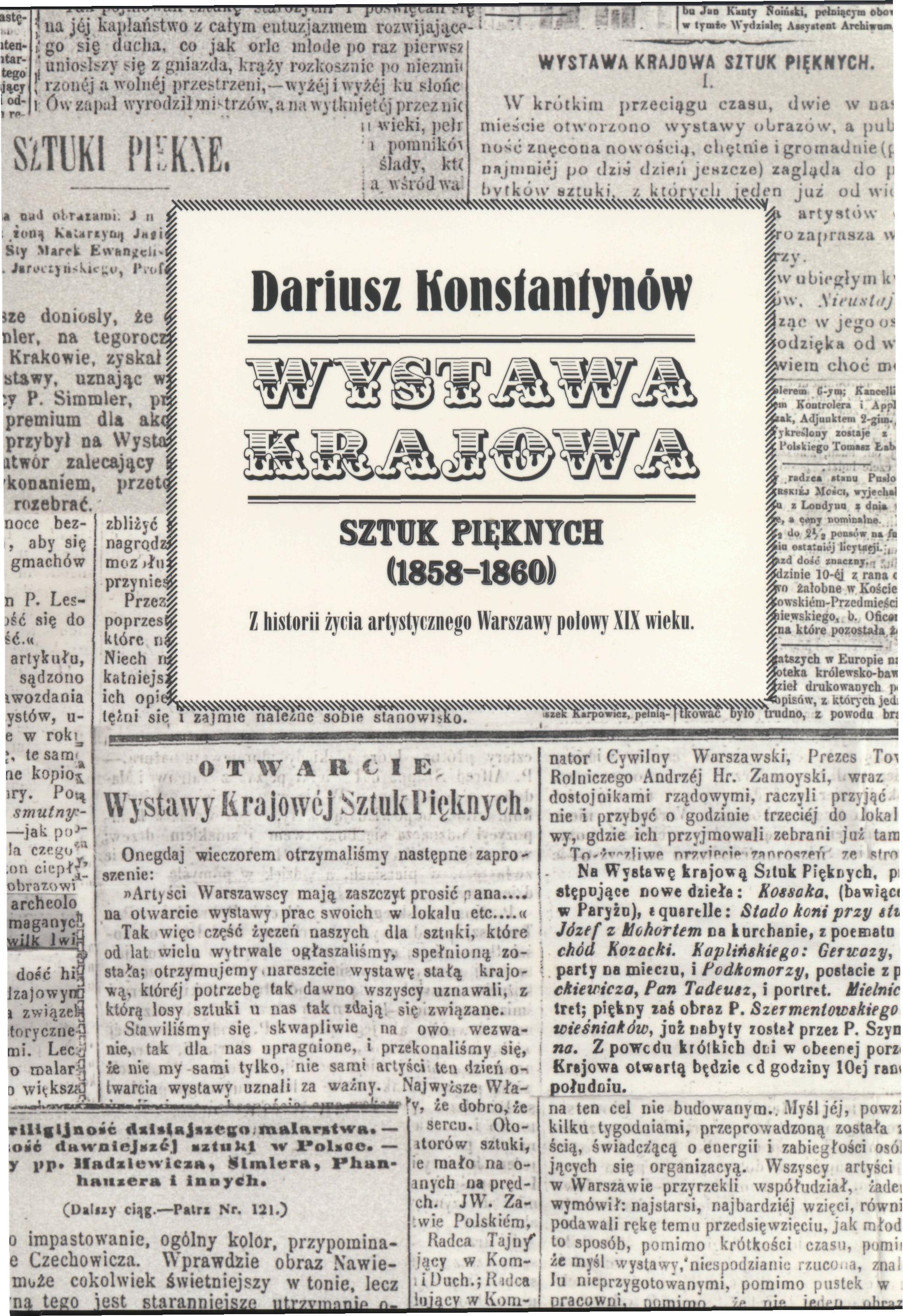 Wystawa Krajowa Sztuk Pięknych (1858-1860). Z historii życia artystycznego Warszawy połowy XIX wieku. Warszawa 2012, Instytut Sztuki PAN. ISBN 978-83-63877-01-9