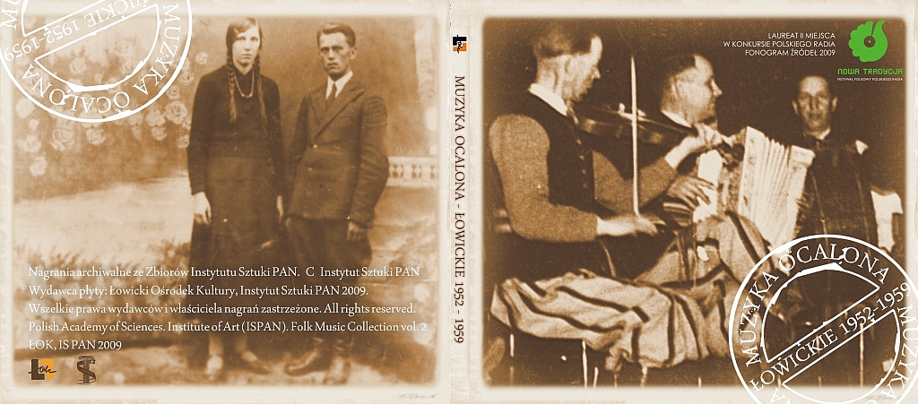 Recordings presented on this album state only a small part of never published before Łowicz region sound archives collected in the Institute of Arts of Polish Academy of Sciences. The first, unsaved recordings made in the area of Łowicz region were registered in the mid-war period, but due to the war turmoil they haven’t survived until our times. Music materials of this album are the oldest preserved phonographic registrations of Łowicz music from before the stylisation period.