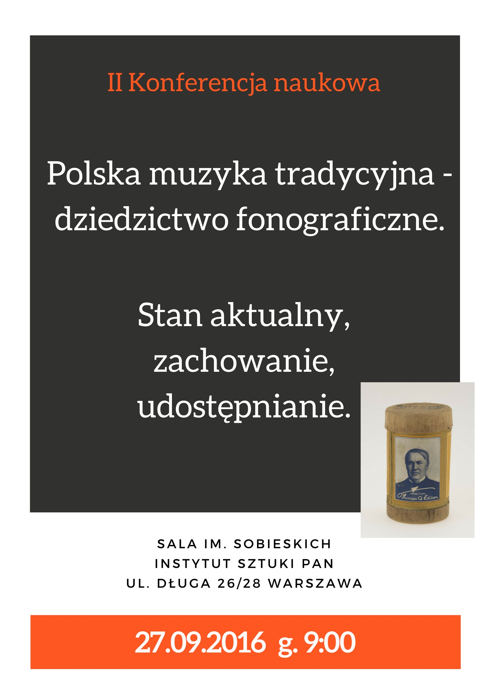 27 września odbyła się II konferencja naukowa zorganizowana przez Zbiory Fonograficzne Instytutu Sztuki PAN w ramach projektu Polska muzyka tradycyjna - dziedzictwo fonograficzne. Stan aktualny, zachowanie, udostępnianie.